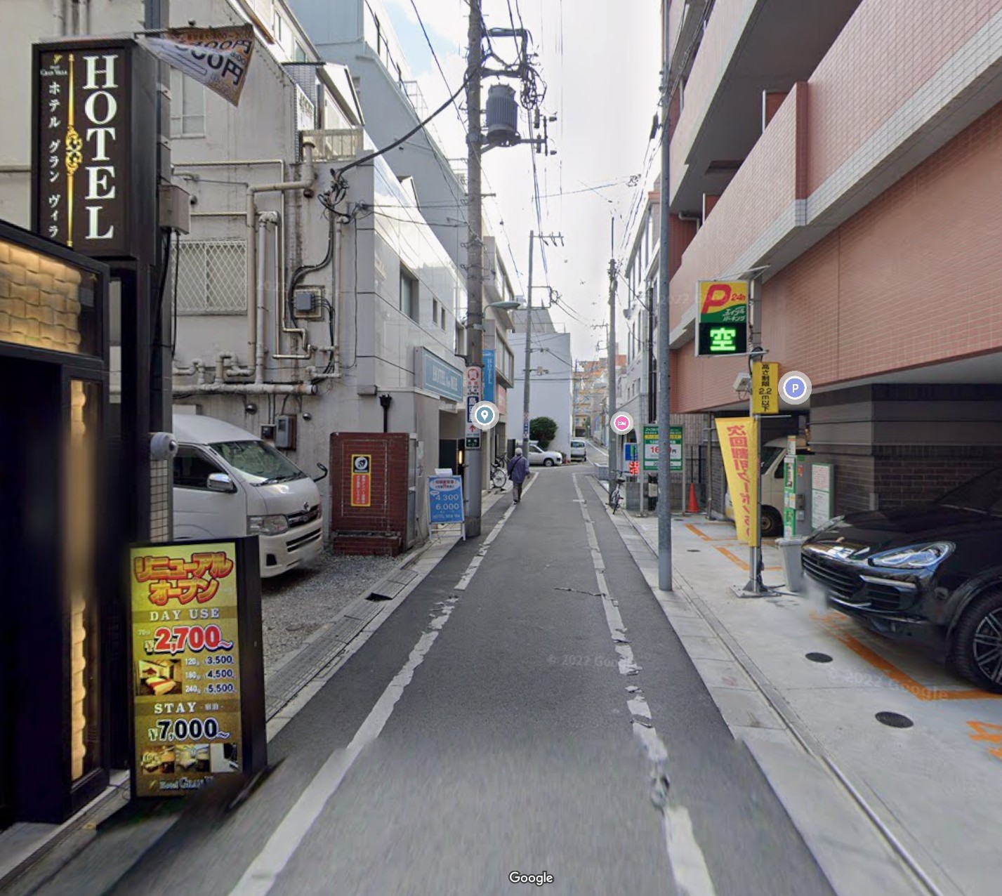店(ビル)の裏側にコインパーキングが御座います。
